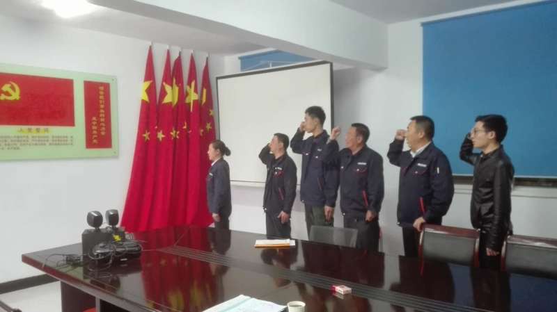 ??面向鮮紅的黨旗,明星機械新老黨員在曹美玉同志的帶領下莊嚴地向黨組織宣誓:擁護黨的綱領,遵守黨的章程,履行黨員義務,執行黨的決定,嚴守黨的紀律,保守黨的秘密,對黨忠誠,積**工作,為共產主義奮斗終身,隨時準備為黨和人民犧牲一切,永不叛黨。